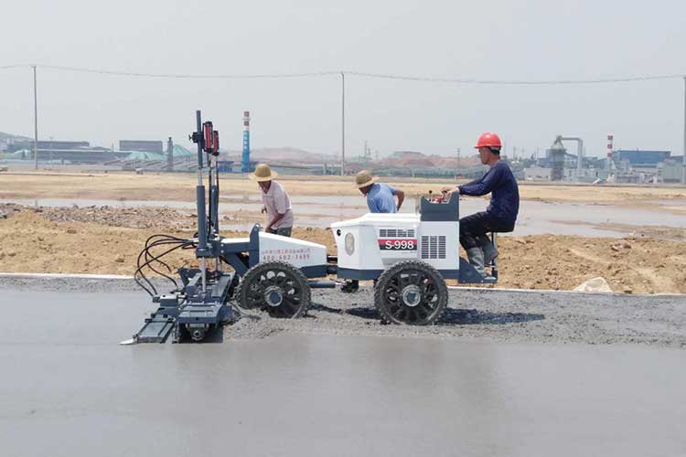 5. The twisted cage between the vibrating plate and the scraper flips the excess concrete onto one side, reducing manpower and improving speed.