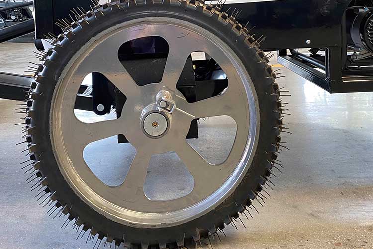 7. The dual wheel independent movement is flexible and convenient. Through the electric drive of the dual wheel walking system, the wheels can move independently without affecting the leveling head. The forward, backward, steering, and travel speed of the wheels are manually controlled, making movement very convenient.