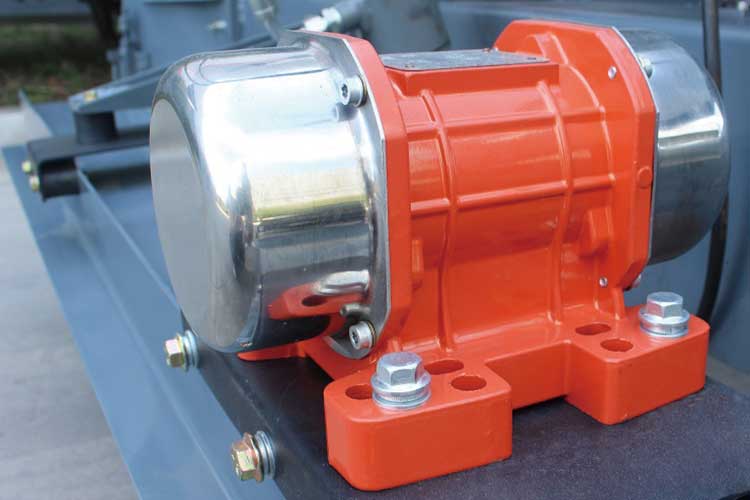 8. The twisted cage between the vibrating plate and the scraper flips the excess concrete onto one side, reducing manpower and improving speed.