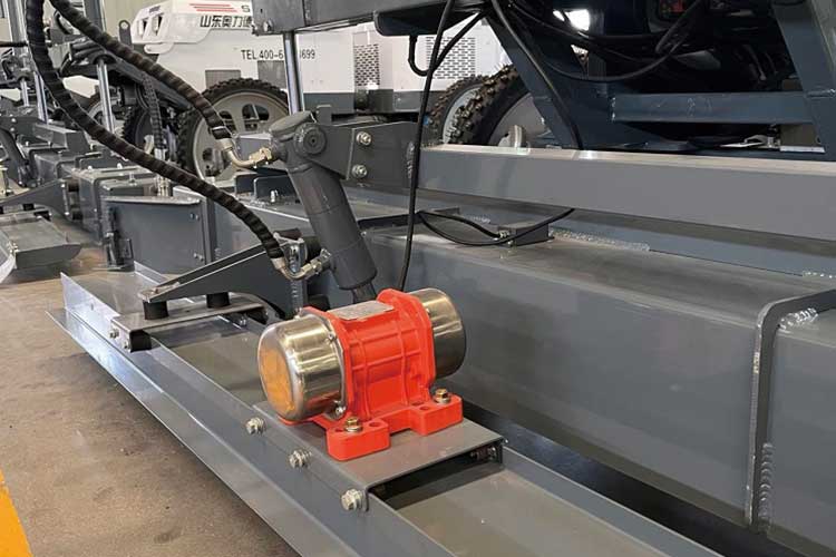 9、振動板與刮板之間的絞籠將多余混凝土翻播一側,減少了人力,提高了速度。